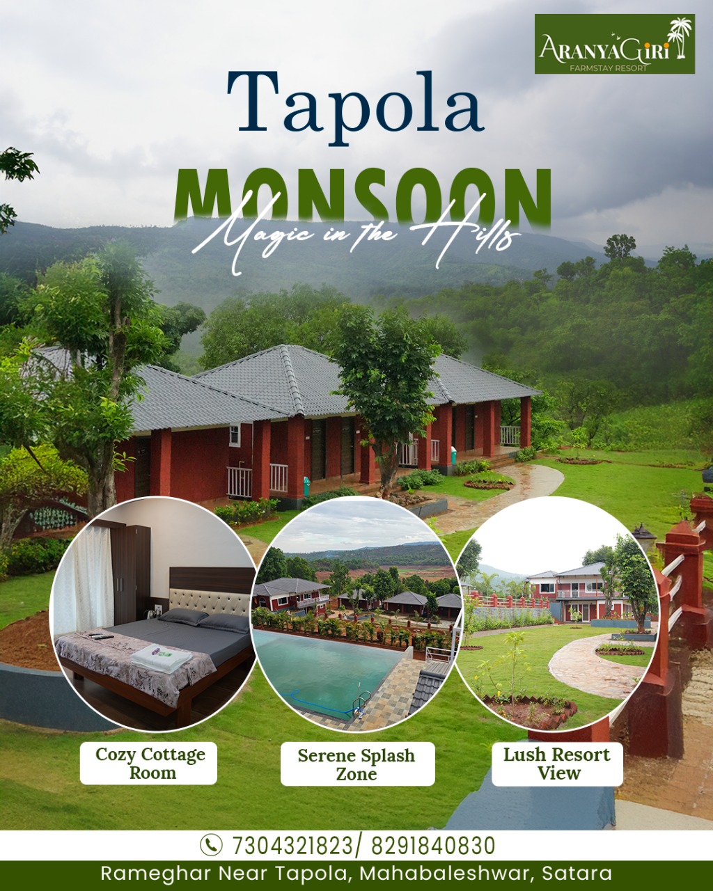 Discover the serene beauty of nature at Aranyagiri Farmstay Resort, a peaceful retreat nestled in the scenic hills of Mahabaleshwar, near the picturesque Mini Kashmir – Tapola. Spread across 10 lush acres, our resort offers a perfect blend of rustic charm and modern comfort. Surrounded by orchards, green valleys, and tranquil riverside views, Aranyagiri invites you to experience authentic farm life, unwind in nature’s lap, and reconnect with yourself. Whether you are looking for relaxation, adventure, or a family getaway, our farmstay promises a rejuvenating and memorable escape.